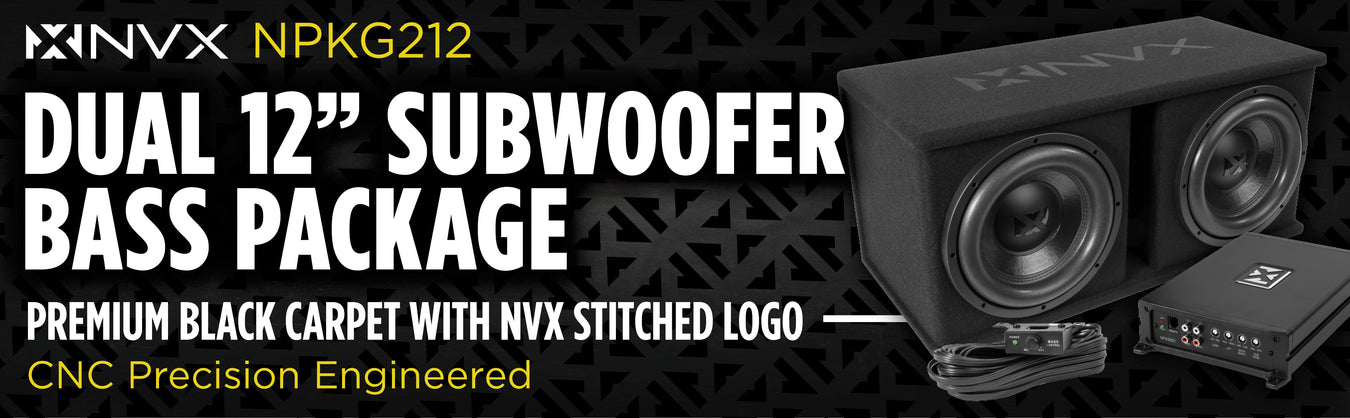 NPKG212 1000W Peak (500W RMS) Loaded Dual 12" Subwoofer with Slot Ported Enclosure and Monoblock Amplifier with Remote Bass Knob and Amplifier Wiring Kit