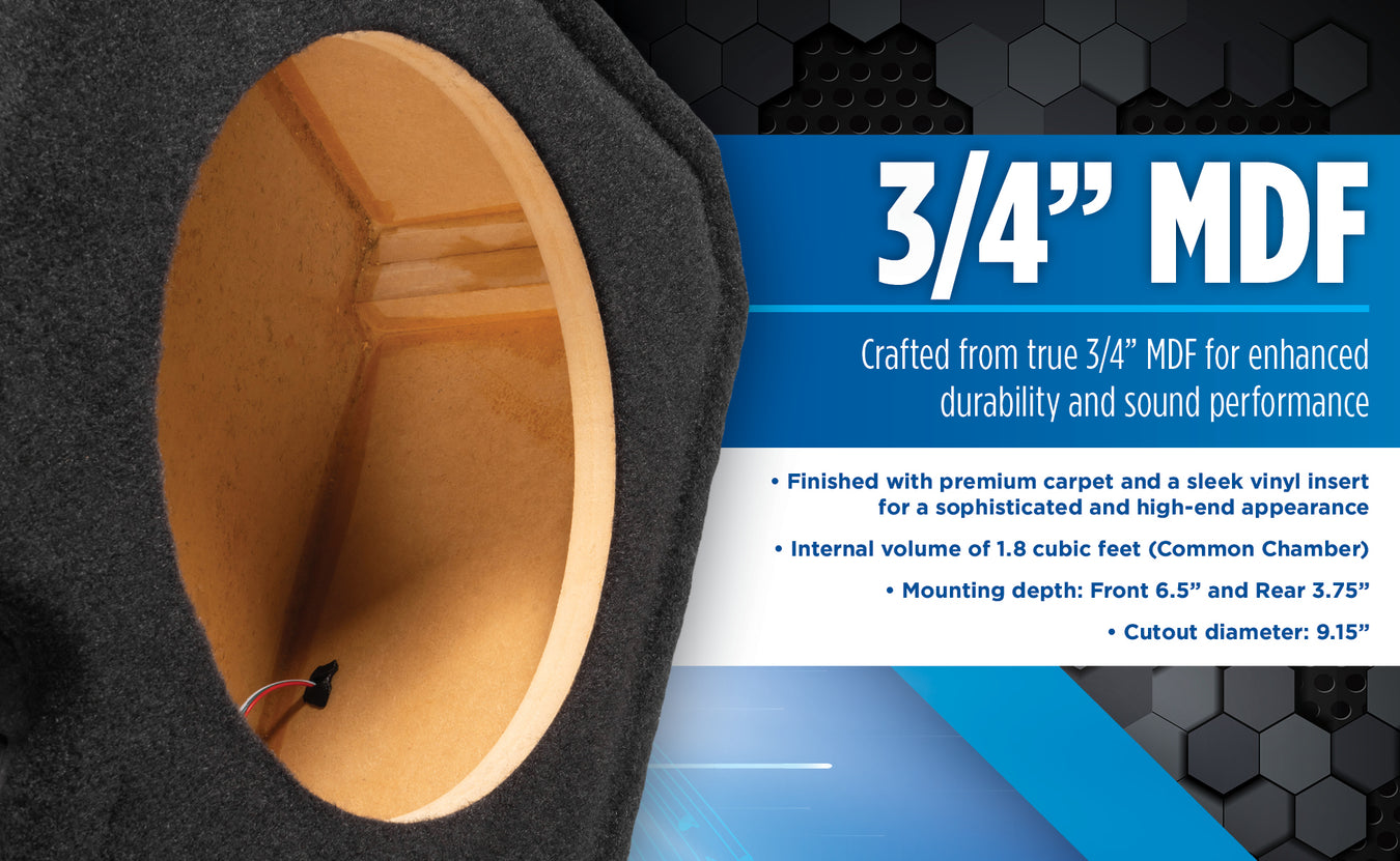 - Crafted from 3/4" MDF (Medium Density Fiberboard) for enhanced durability and sound performance.
