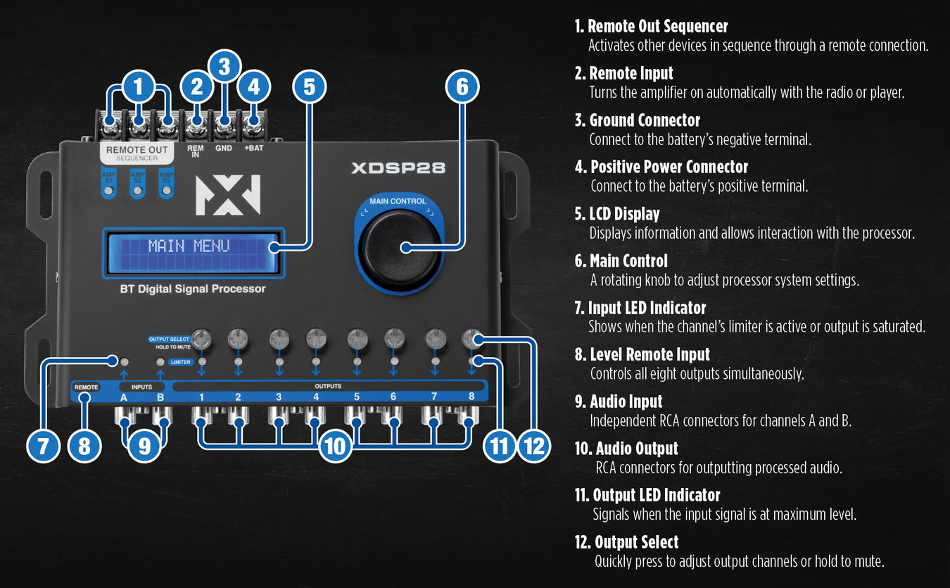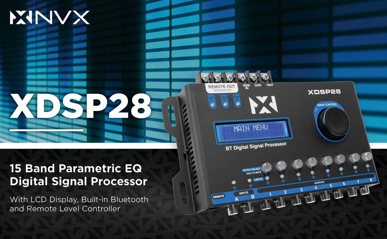 XDSP28 8-Channel X-Series 15 Band Parametric EQ Digital Signal Processor (DSP) with LCD Display, Built-in Bluetooth and Remote Level Controller