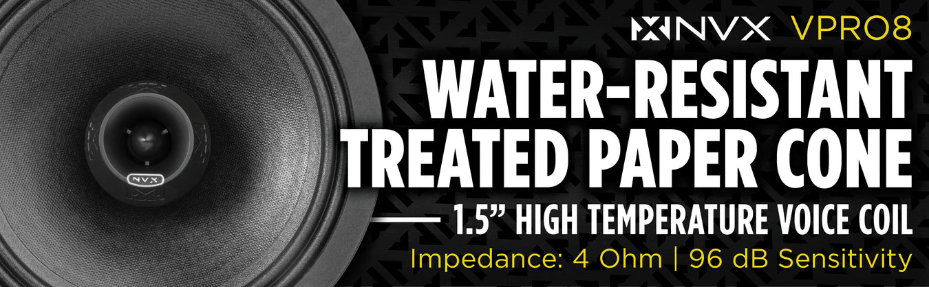 VPRO8 550W Peak (275W RMS) 8" V-Series Pro 2-Way Water Resistant Coaxial Loudspeaker with Bullet Tweeter