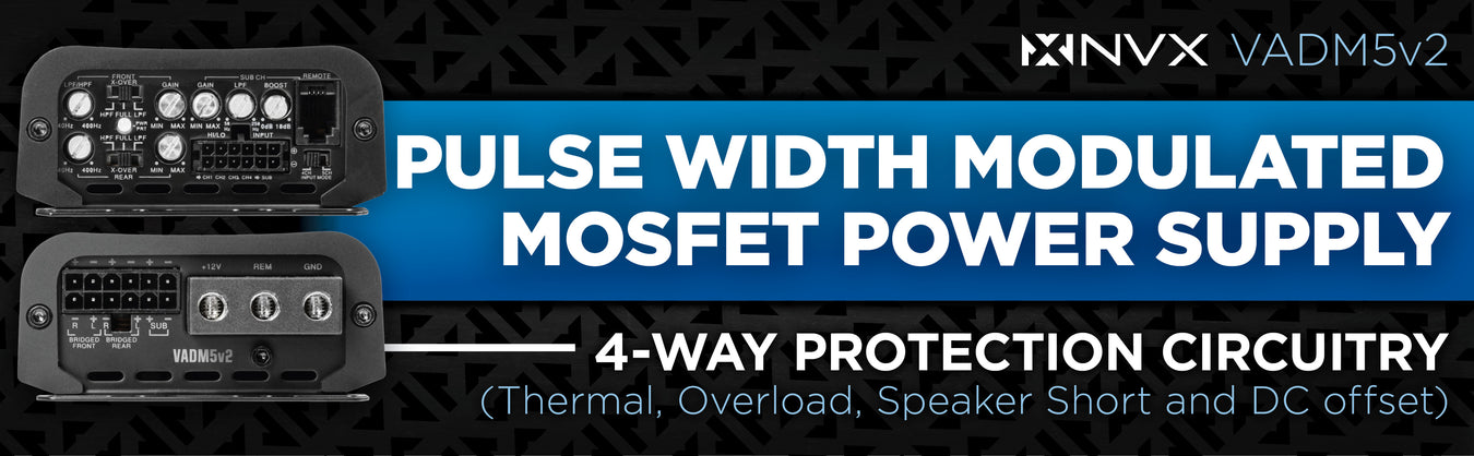 • 4-way protection circuitry (thermal, overload, speaker short protection and DC offset)