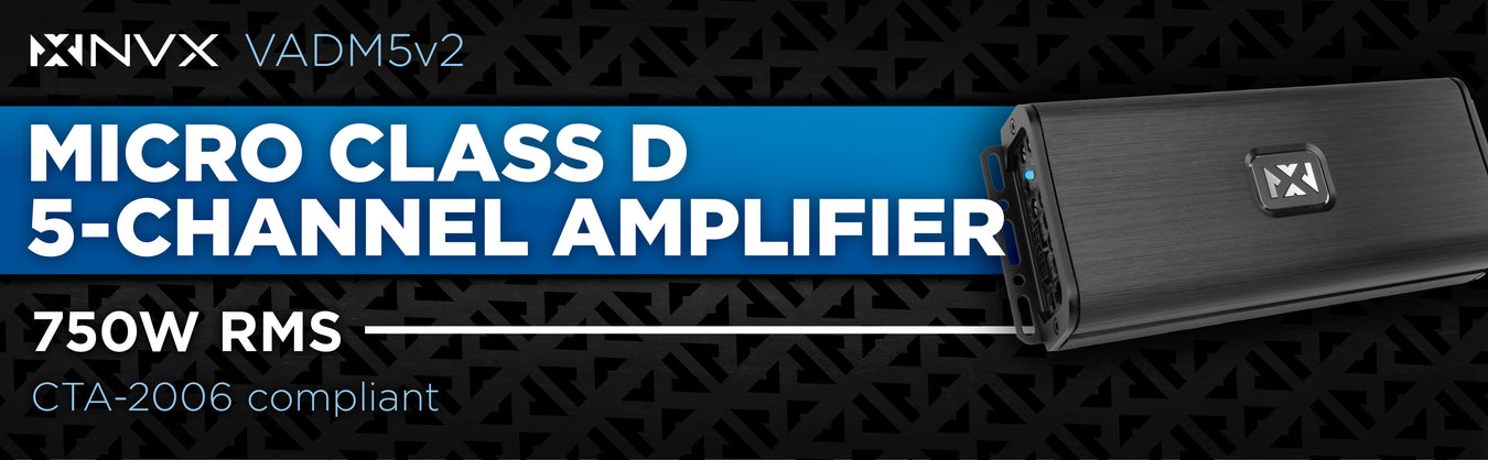 VADM5 v2 (VADM5v2) 1500W Peak (750W RMS) V-Series Micro Full-Range Class D Compact 5-Channel Amplifier with Remote Bass Knob (Marine Certified)