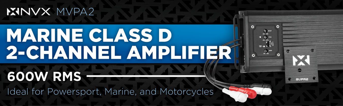 MVPA2 600W RMS Marine V-Series 2-Channel Class-D Compact Powersports Amplifier