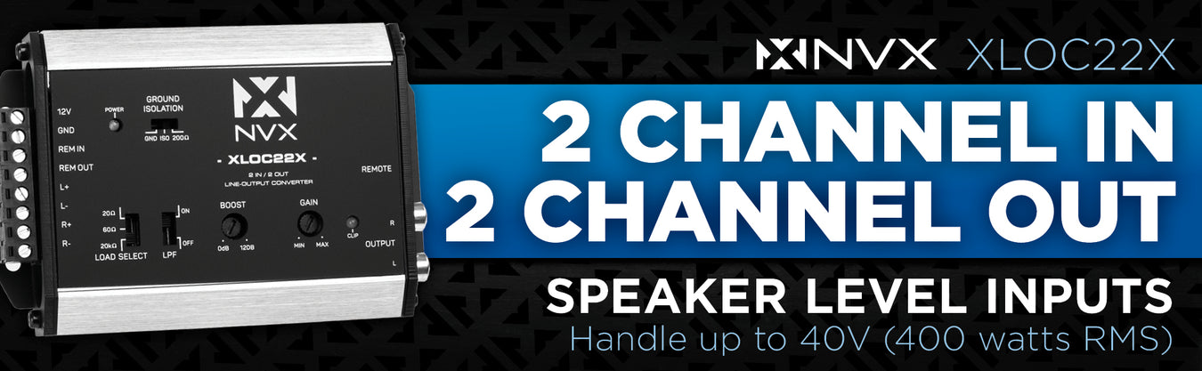 • 2-channels of speaker-level inputs handle up to 40V (400 watts RMS)