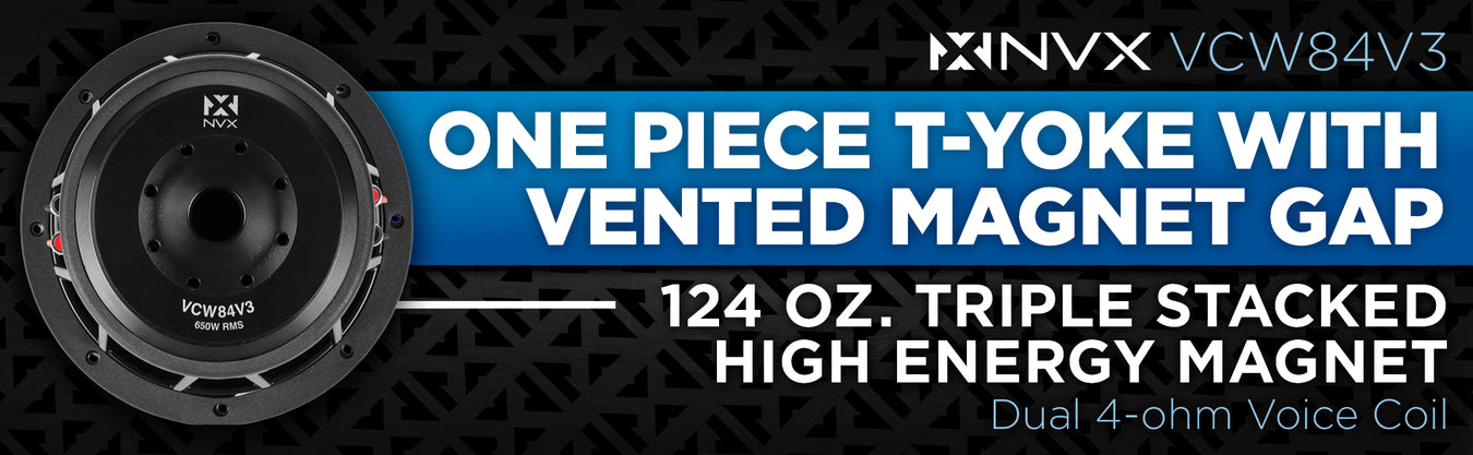 - 8" Dual 4-ohm VC-Series v3 Car Subwoofer
