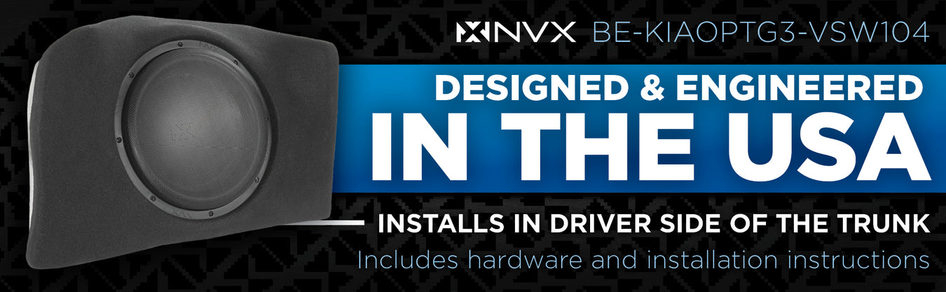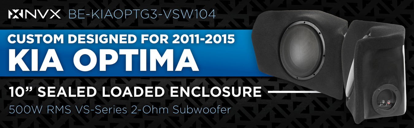 2011-2015 Kia Optima Bass Package - Includes 10" 500W RMS Subwoofer, Custom Enclosure, Monoblock Amplifier, Line Out Converter and Complete Wiring Kit (PBK-KIAOPTG3-VSW102)