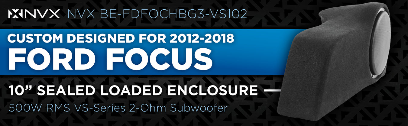 2012-2018 Ford Focus - Custom 500W RMS 10" Loaded Subwoofer Enclosure | NVX BE-FDFOCHBG3-VS102