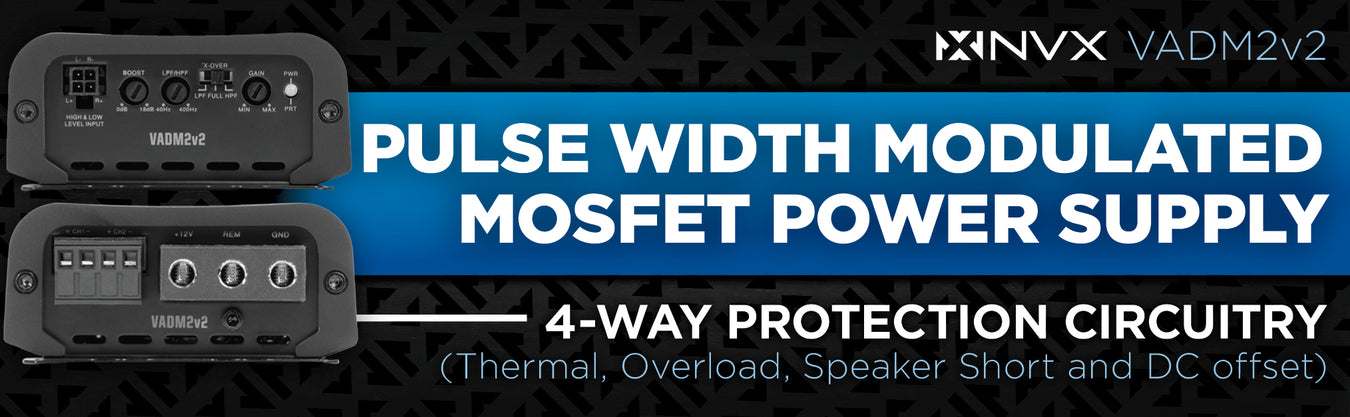 - 4-way protection circuitry (thermal, overload, speaker short protection and DC offset)